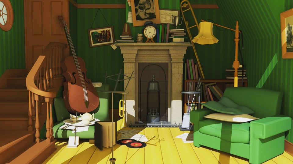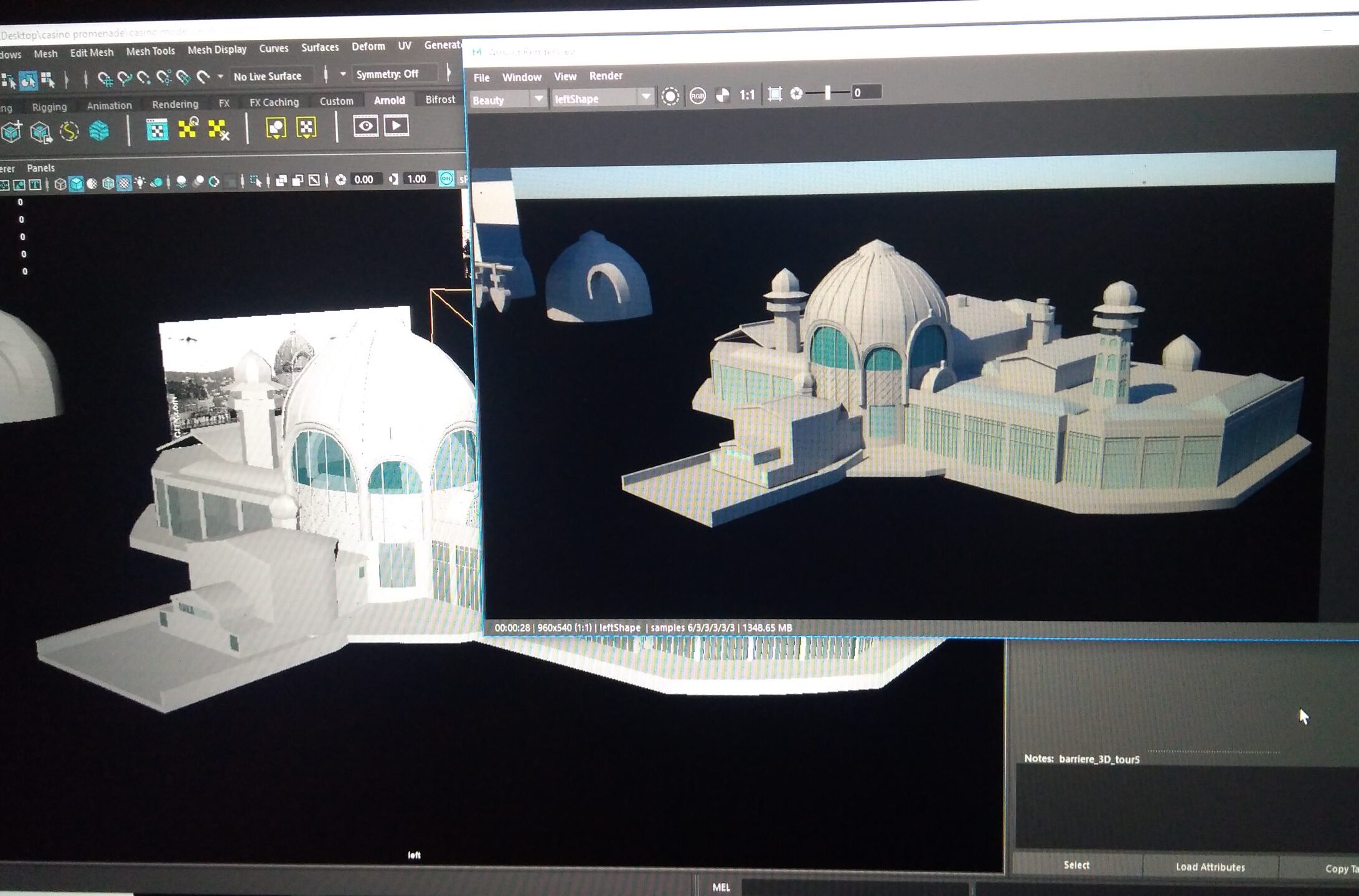 A droite,  travail de modélisation, texturing et lighting fait à par moi, dans Maya. Base: une image.